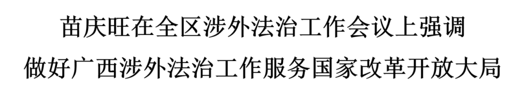 4月17日,全区涉外法治工作会议在南宁召开,梳理分析近期涉外法治工作情况,研究部署下一步工作。自治区党委常委、政法委书记,自治区党委全面依法治区委员会成员兼办公室主任苗庆旺出席会议并讲话。
