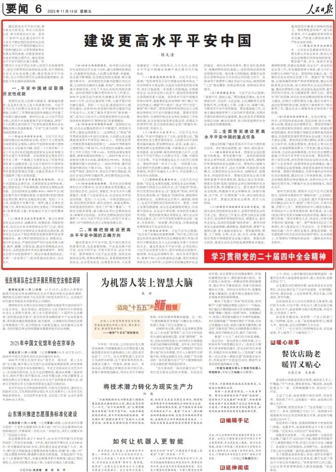 《建议》明确了建设更高水平平安中国的重点任务。我们要全面把握,逐一细化,抓好落实。