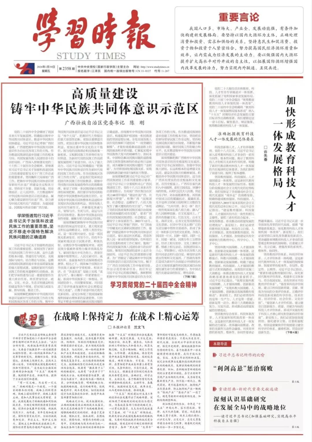广西壮族自治区党委书记陈刚:高质量建设铸牢中华民族共同体意识示范区