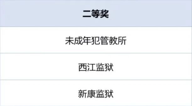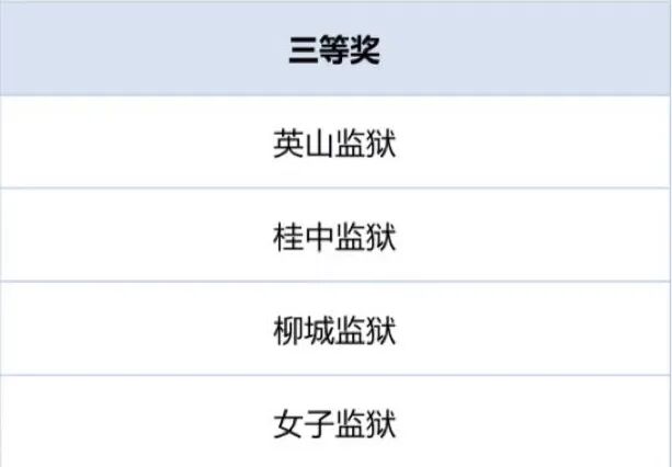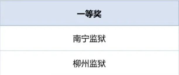 经过激烈角逐,南宁监狱、柳州监狱荣获一等奖,未成年犯管教所(邕州监狱)、西江监狱、新康监狱荣获二等奖,英山监狱、桂中监狱、柳城监狱、女子监狱荣获三等奖。
