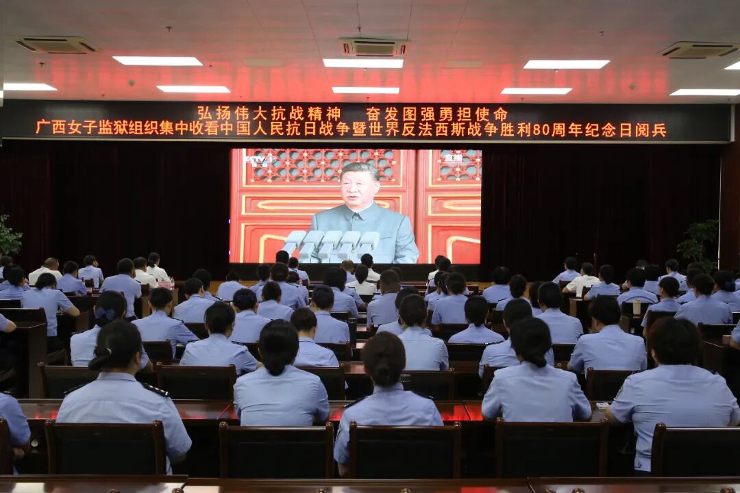 9月3日上午,纪念中国人民抗日战争暨世界反法西斯战争胜利80周年大会在京隆重举行,并在天安门广场举行盛大阅兵仪式。中共中央总书记、国家主席、中央军委主席习近平发表重要讲话并检阅受阅部队。全区监狱系统各级党组织以开展“弘扬伟大抗战精神 奋发图强勇担使命”主题党日活动的方式,组织全体干警职工、离退休人员集中收看中国人民抗日战争暨世界反法西斯战争胜利80周年纪念大会直播。
