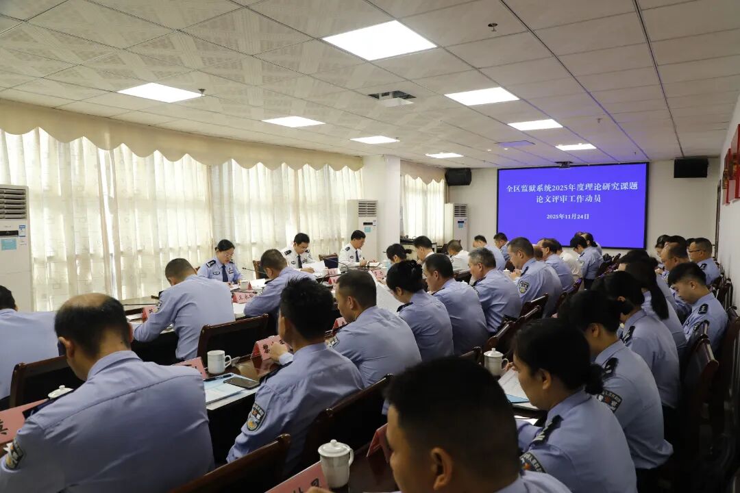在全国上下深入学习贯彻党的二十届四中全会精神,广西监狱系统扎实推进监狱工作高质量发展的关键时期,11月24日至28日,2025年度全区监狱系统理论研究课题论文评审工作在贵港监狱顺利开展。自治区监狱管理局党委委员、副局长曾爱龙出席评审工作动员会并作讲话。