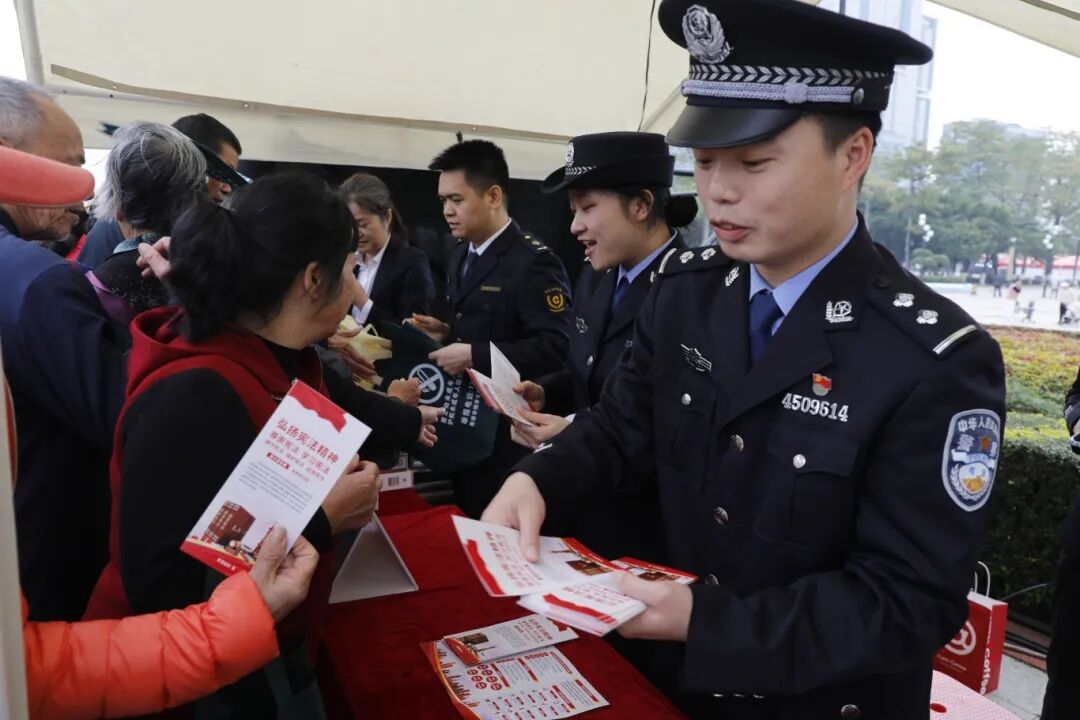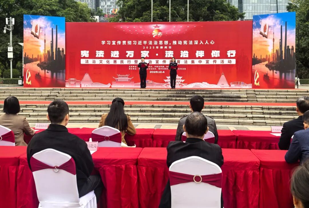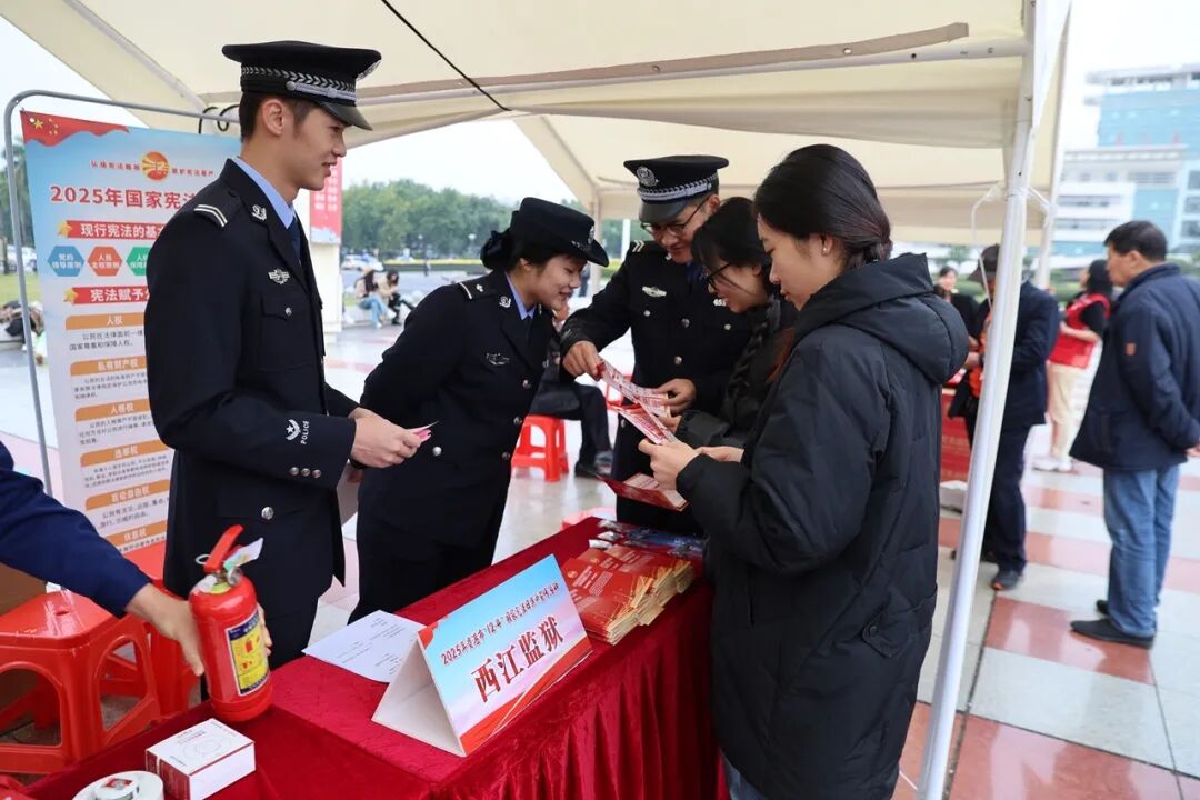 中渡监狱、宜州监狱、贵港监狱、柳州监狱、西江监狱、钦州监狱组织警察代表积极参与驻地举办的2025年“宪法宣传周”活动启动仪式暨国家宪法日集中宣传活动,面对面向群众普及法律知识。