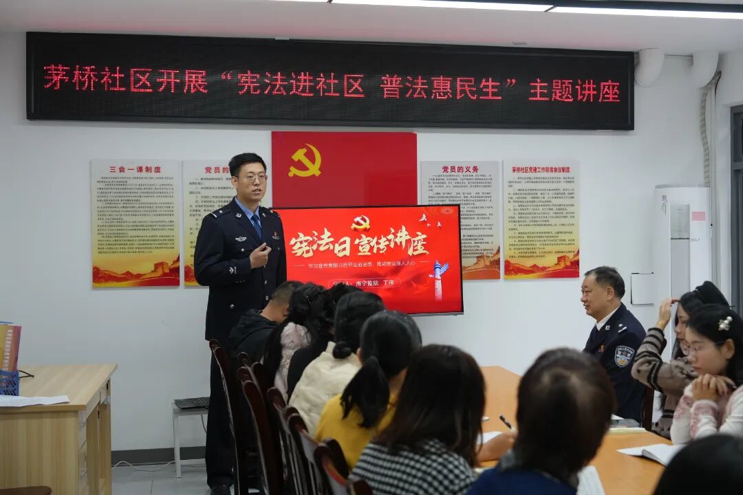 南宁监狱组织普法志愿者与南宁市茅桥社区工作人员一道,通过“现场普法课堂+宪法知识问答+志愿者讲解”等形式展开了一场内容丰富的宪法宣传活动。