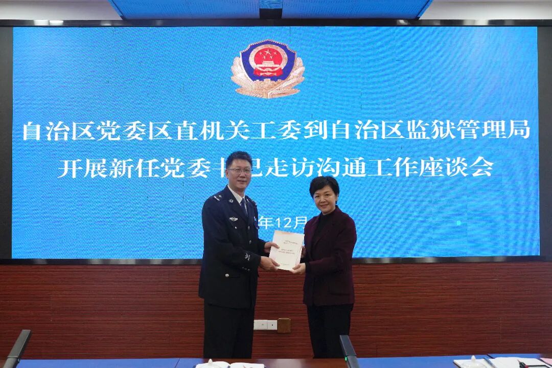 12月11日,自治区党委区直机关工委分管日常工作的副书记罗荣莉率队到自治区监狱管理局开展新任党委书记走访沟通,并指导机关党建工作。