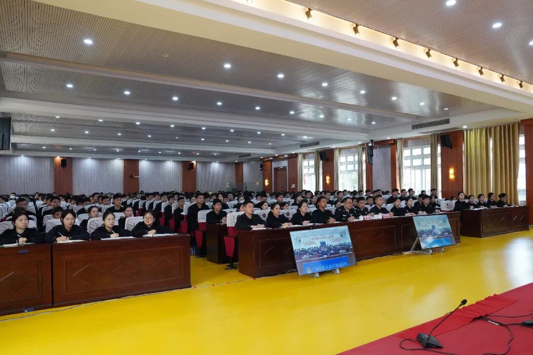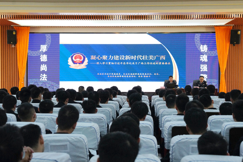 自治区监狱管理局党委委员、副局长黄捷主持宣讲。全区监狱、司法行政戒毒系统35岁以下青年警察、2025年第二批新警培训班全体学员,共计3500余人参加宣讲活动。