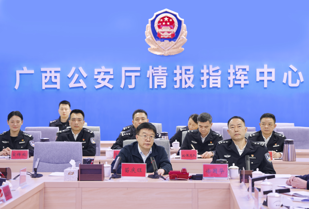 在广西女子监狱,苗庆旺详细了解监区安保、安全管理与民警值守情况,强调严守安全底线与纪律红线,严防各类安全风险,确保监区安全稳定。在长湖警务工作服务站,苗庆旺实地察看警务装备与监控运行,慰问执勤民警,对干警坚守岗位、守护平安的责任担当给予肯定。在自治区公安厅情指中心,苗庆旺听取假期安保工作汇报,通过联网系统向各市公安干警致以节日问候,要求大家强化底线思维和忧患意识,以忠勇慎勤情怀和严细深实作风,做好春节期间大型活动安保、社会治安防控等工作,守护好人民群众生命财产安全,营造安全稳定的社会环境。