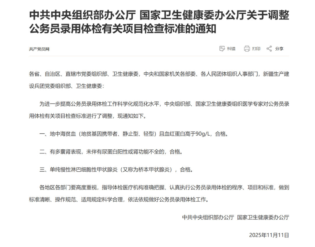 为进一步提高公务员录用体检工作科学化规范化水平,中央组织部、国家卫生健康委组织医学专家对公务员录用体检有关项目检查标准进行了调整,现通知如下。