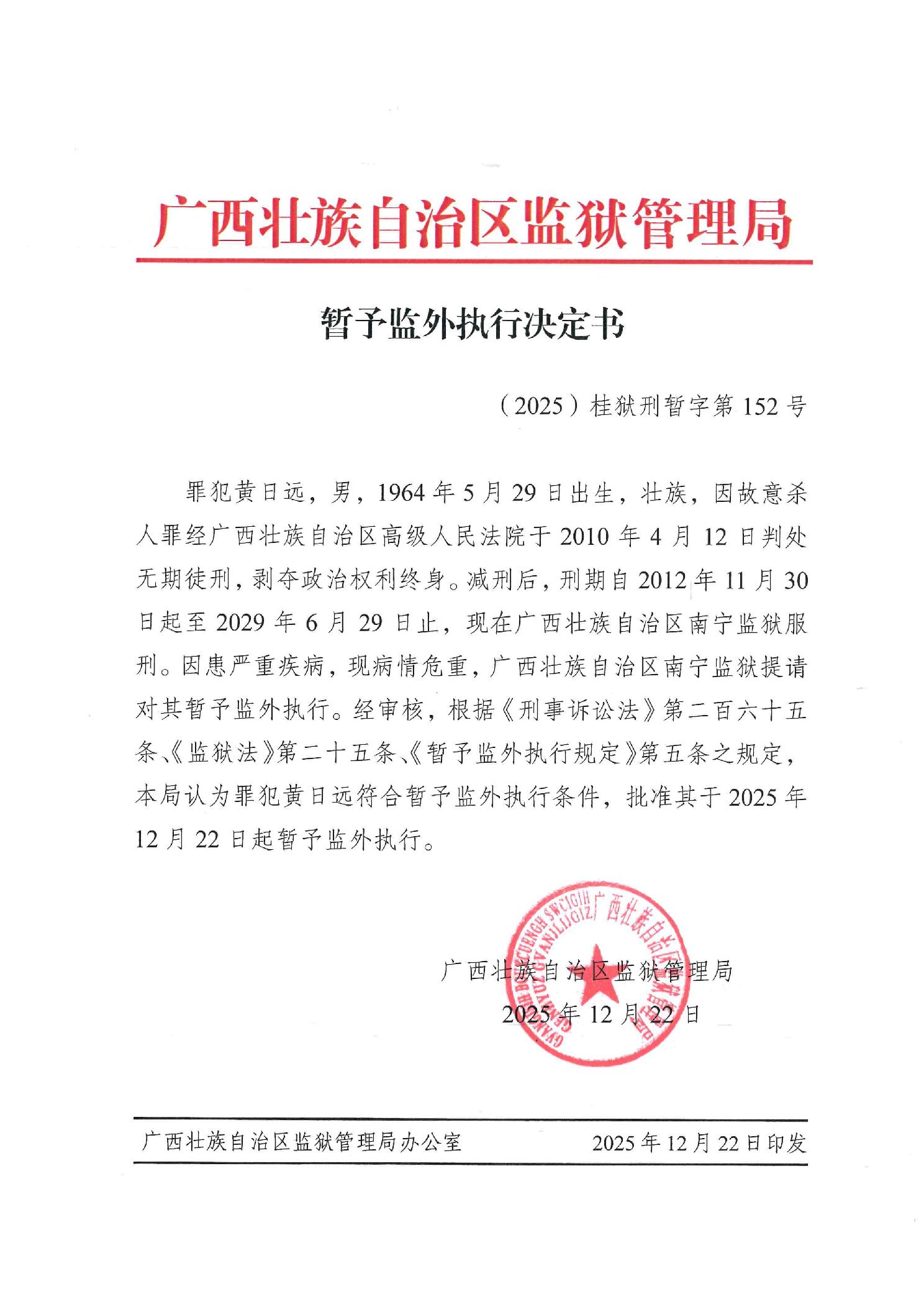 暂予监外执行决定书(2025)桂狱刑暂字第152号