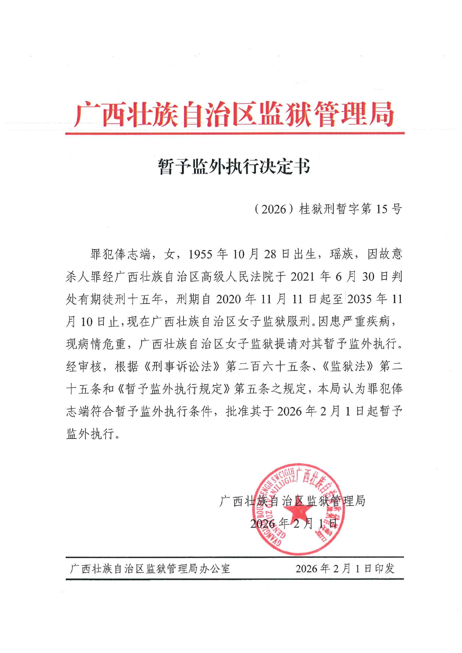 暂予监外执行决定书(2026)桂狱刑暂字第15号