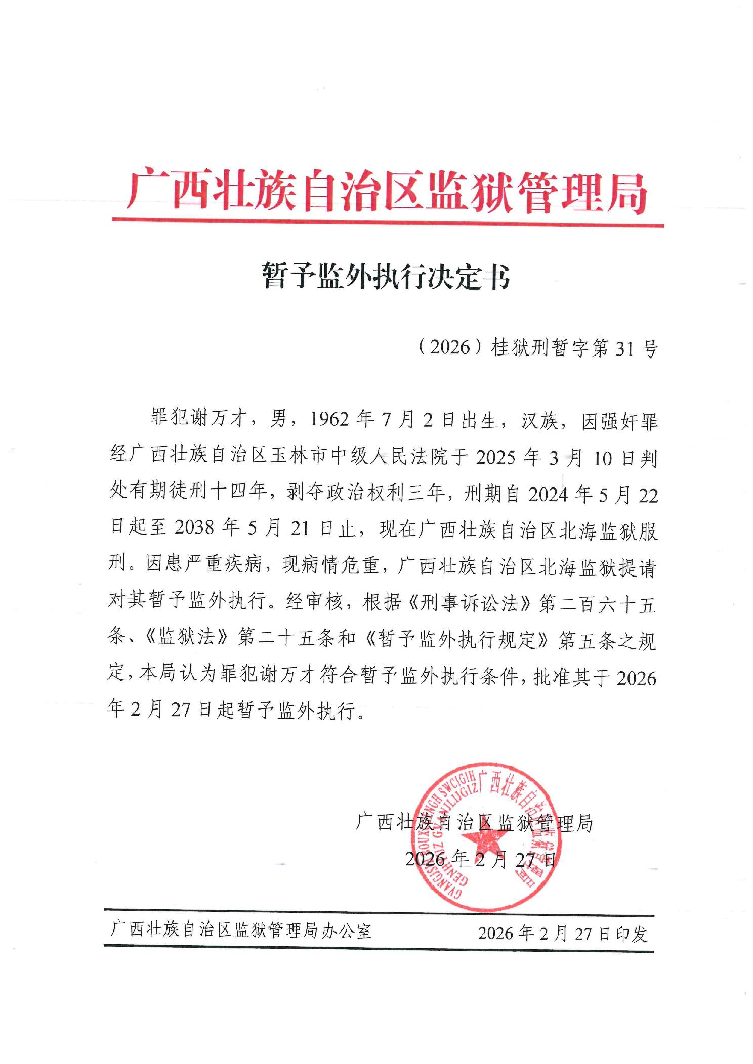 暂予监外执行决定书(2026)桂狱刑暂字第31号
