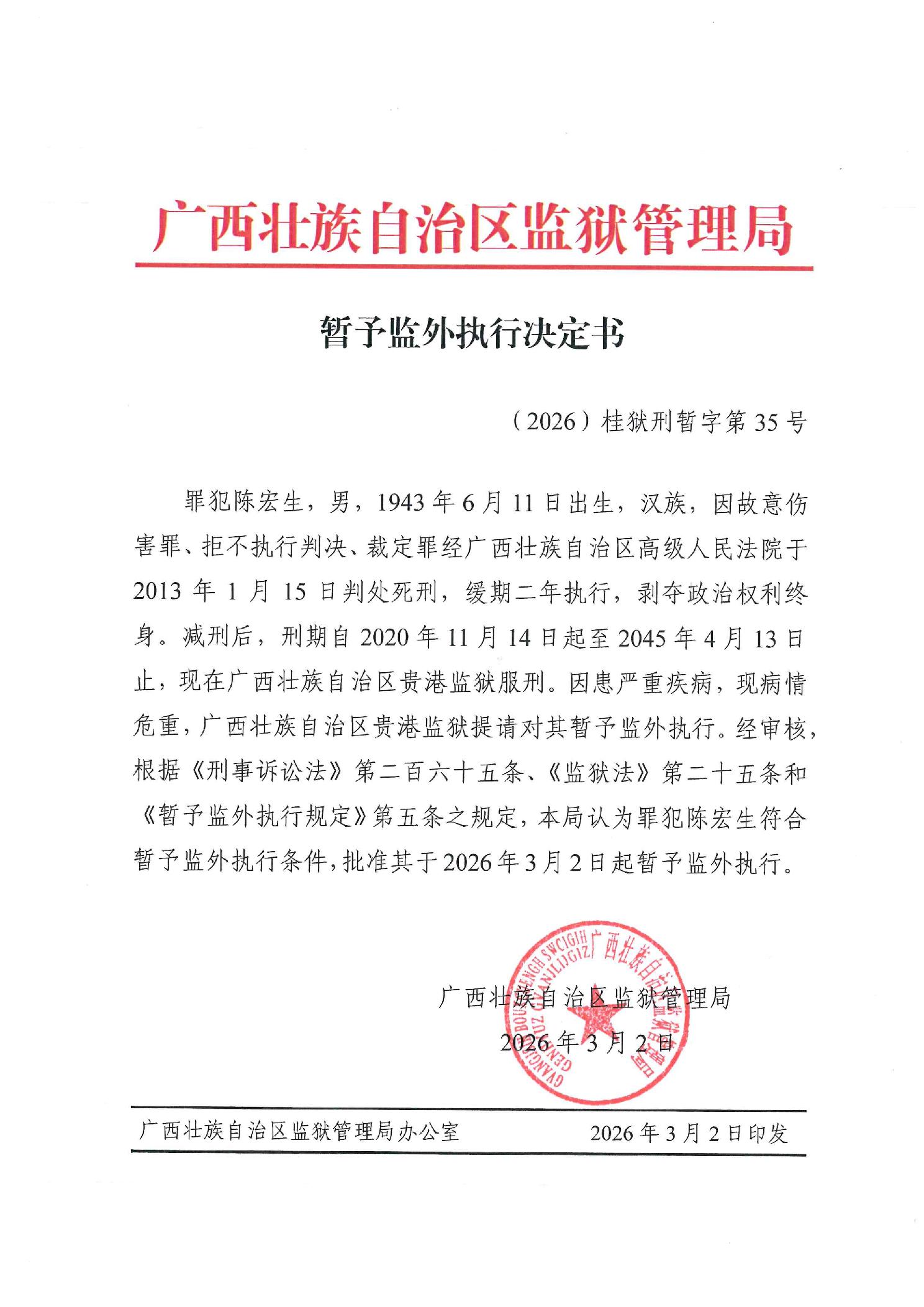 暂予监外执行决定书(2026)桂狱刑暂字第35号