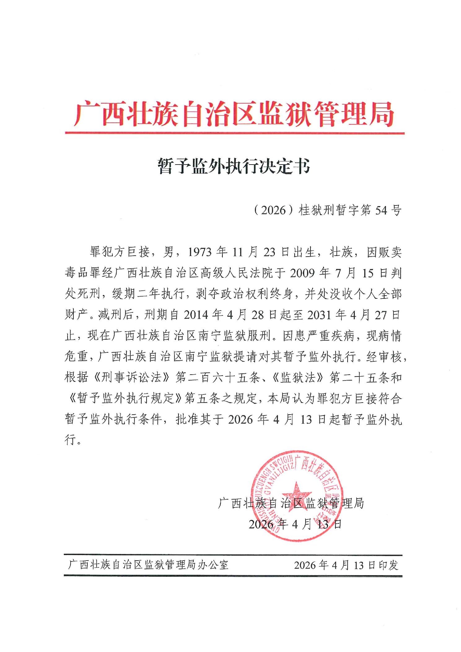 暂予监外执行决定书(2026)桂狱刑暂字第54号