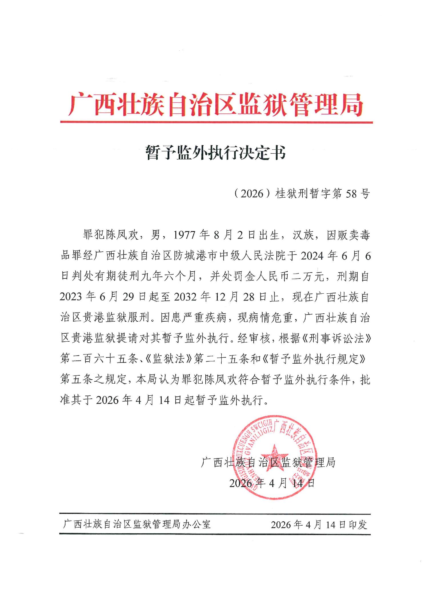 暂予监外执行决定书(2026)桂狱刑暂字第58号