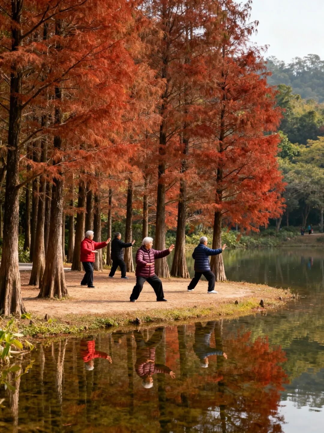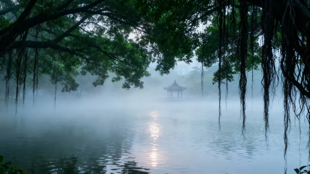 公园里,又是另一番景致。那一片片的绿,依旧是霸道的,榕树的气根在薄雾里静垂,如老者长须。只是这绿,到底也起了变化。不再是夏日那种油汪汪的、泼洒似的浓绿,也不是初冬时略显疲沓的苍绿,而是沉静下来的、一种内敛的黛绿。像一块上好的墨玉,通了人性,知道该收敛些锋芒了。湖边的水杉,褪尽了最后的赭红,露出清瘦的、笔直的骨骼,倒映在水里,水也是碧沉沉的,不起一丝皱纹。几个老人,穿着厚实的棉服,在空地上慢悠悠地打着太极,动作比夏日里仿佛慢了半拍,更凝滞,也更沉着了。他们的白气从口鼻间悠长地呼出,融入周遭的雾气里,分不清哪是人的气息,哪是天的呼吸。这光景,没有元稹诗中“莫怪严凝切”的峻烈,倒生出一种“静享岁光欢”的安详。