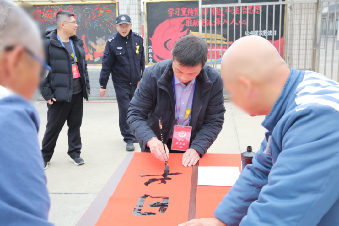 活动现场,民盟盟员挥毫书写改造春联,并对罪犯的书画作品进行现场点评与专业指导,以传统文化熏陶感化罪犯,助力罪犯重塑价值观。
