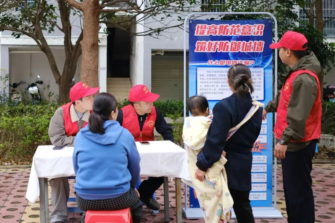 在社区广场,志愿者们用方言向居民讲述身边真实的诈骗案例,重点向老年群体普及防骗知识,指导老人安装“国家反诈中心”APP,叮嘱防诈注意事项,用暖心话语筑牢社区反诈安全防线。