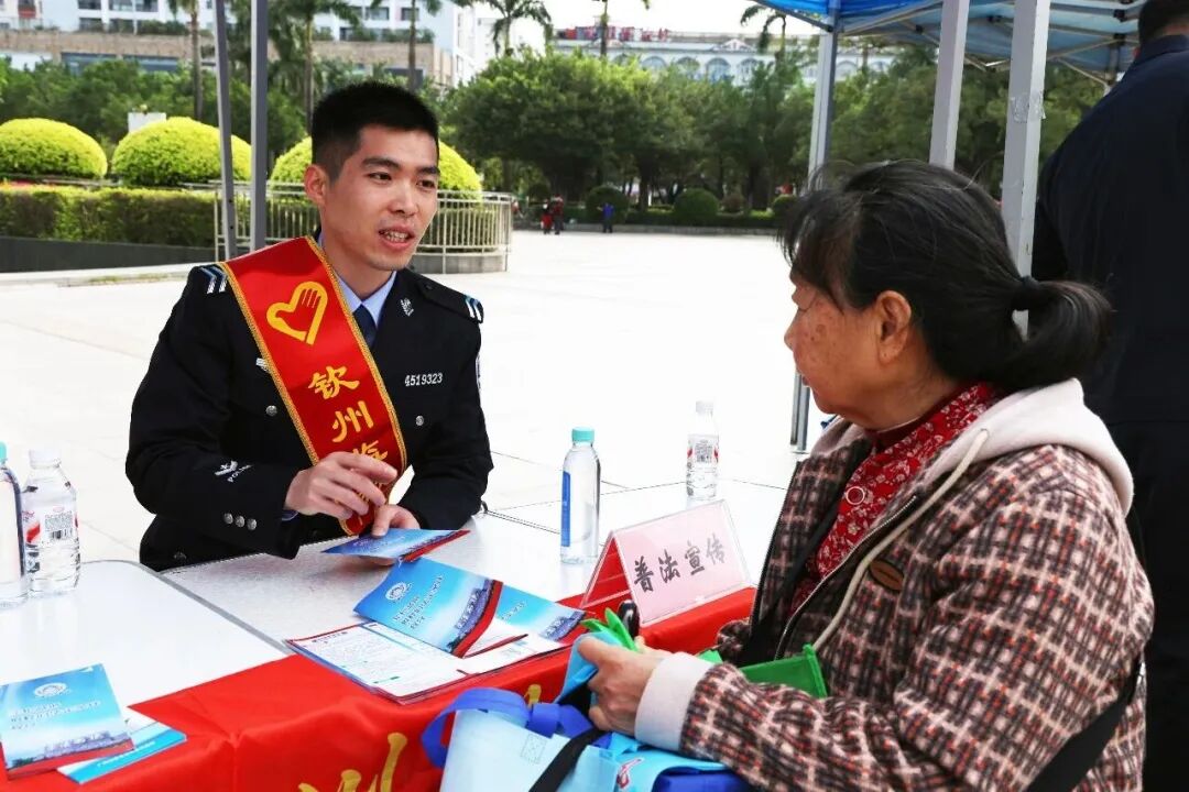 在钦州市“学雷锋·文明实践我行动”暨志愿服务活动现场,青年志愿者通过发放宣传资料、面对面讲解、现场答疑等方式,向市民普及法律知识,耐心解答大家关心的法律问题,引导群众自觉尊法学法守法用法。