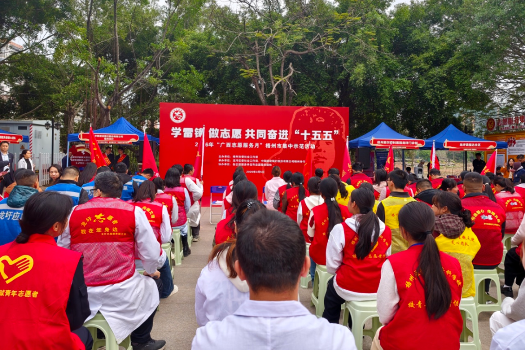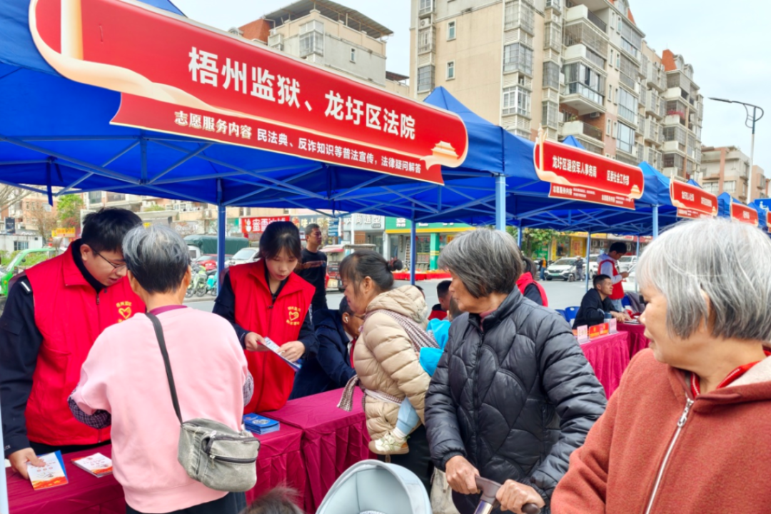 梧州监狱联合龙圩区委社会工作部、龙圩区法院等部门,在龙圩区龙湖小广场开展“学雷锋、做志愿、共同奋进‘十五五’”主题志愿服务活动。