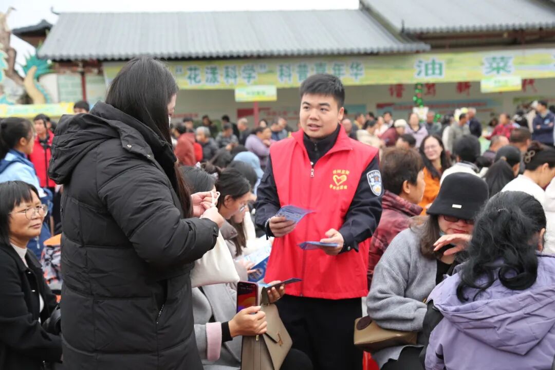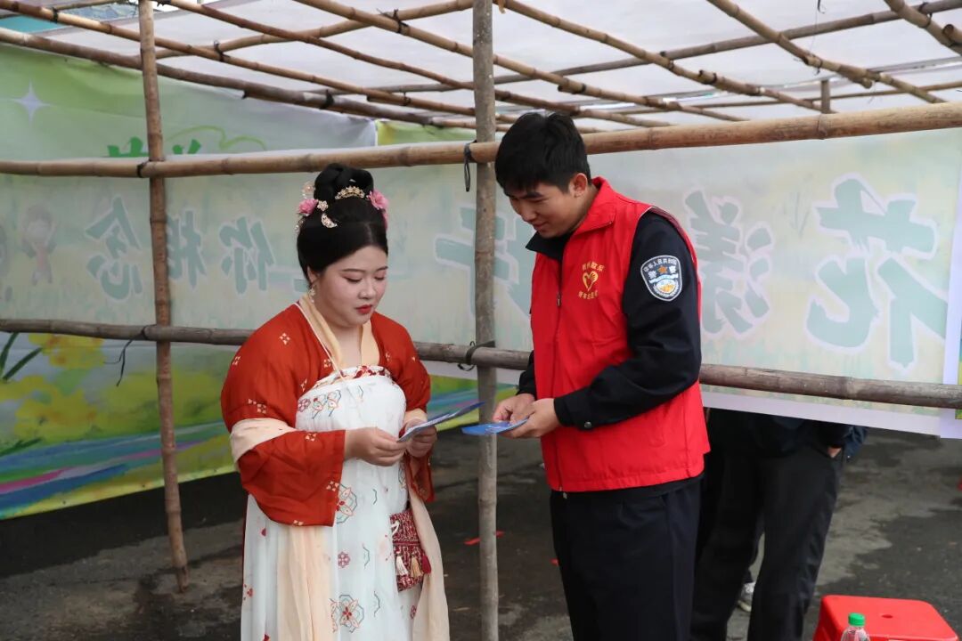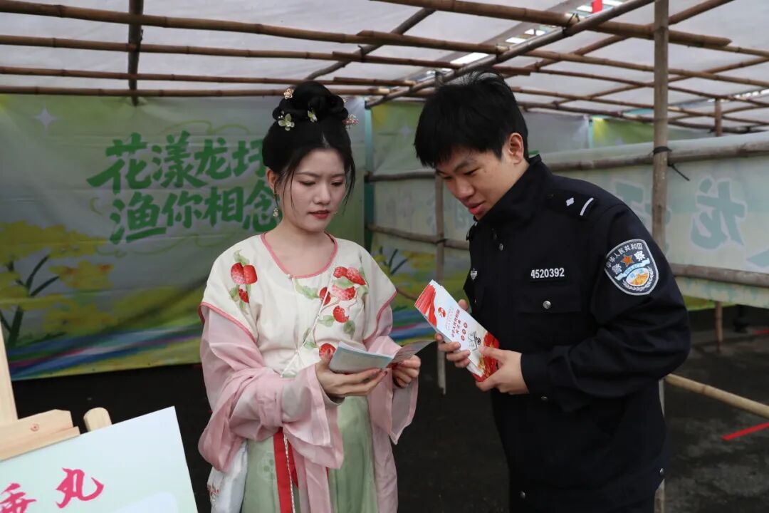 活动期间,恰逢当地开展乡村文旅“赏花季+科技嘉年华”系列活动,监狱警察以“普法摊位+流动课堂”的模式,为村民、游客送上通俗易懂的“法治大餐”。