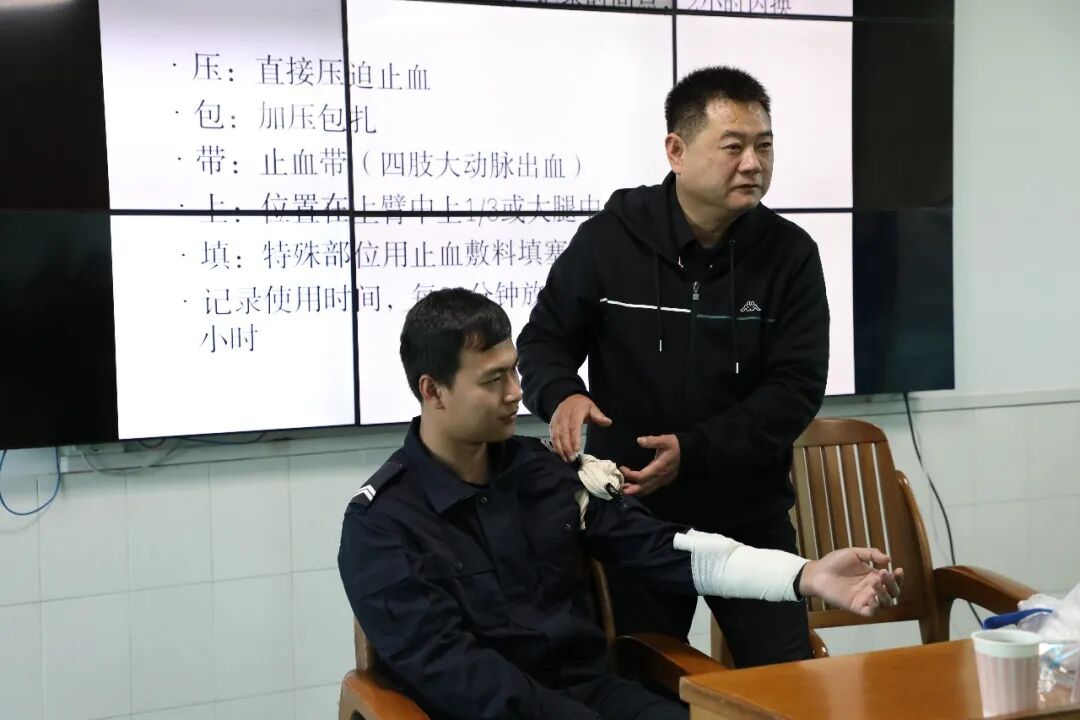 邀请鹿寨县中医医院文致来主任到单位开展急救技能培训,围绕院前急救核心原则,结合典型案例,讲解“黄金4分钟”急救、心肺复苏、创伤止血包扎等技能,帮助参训警察树立规范施救理念。实操环节采取讲师示范、分组演练、一对一帮带的方式,确保培训取得实效。