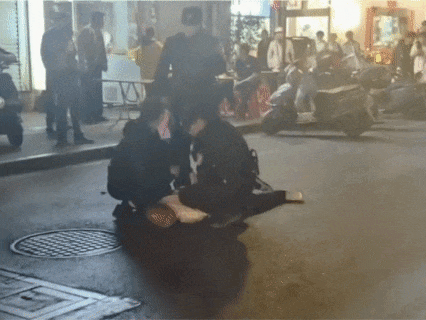 醉酒男子情绪持续激化,先后打砸隔壁商店玻璃门,又手持塑料板凳、交通锥对耐心劝导的邱芝强进行袭击。邱芝强沉着冷静、灵活避让,在保持安全距离的同时与男子巧妙周旋,凭借扎实的警务技能,成功将醉酒男子制服,及时制止了暴力行为。随后,邱芝强一直在现场维护秩序,直至派出所民警赶到。
