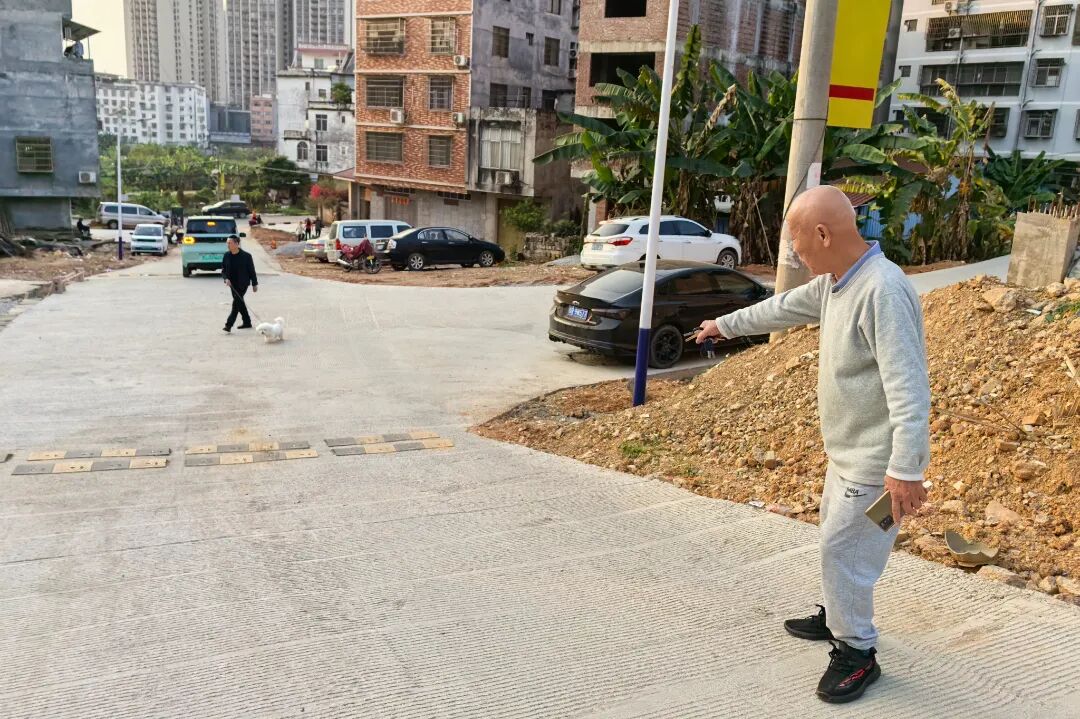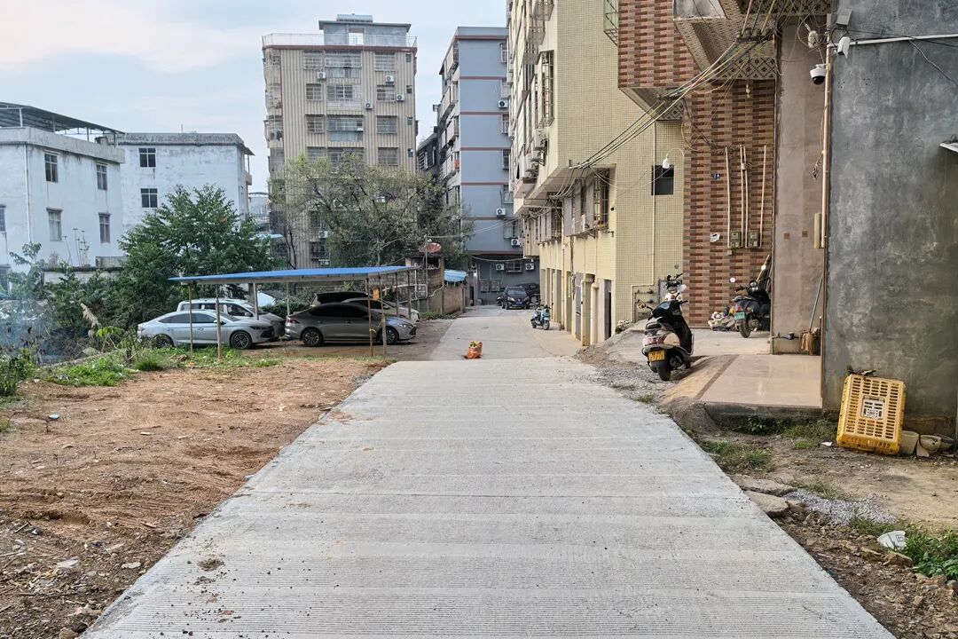 在他的带领下,施工队伍攻坚克难,三天内便完成六段烂路的铲平与废料清理,紧接着又将其中五条烂路(共计165米)改造为五米宽、20厘米厚的标准水泥路,原本被隔断的小区就此连成一体,群众出行难题得到初步解决。
