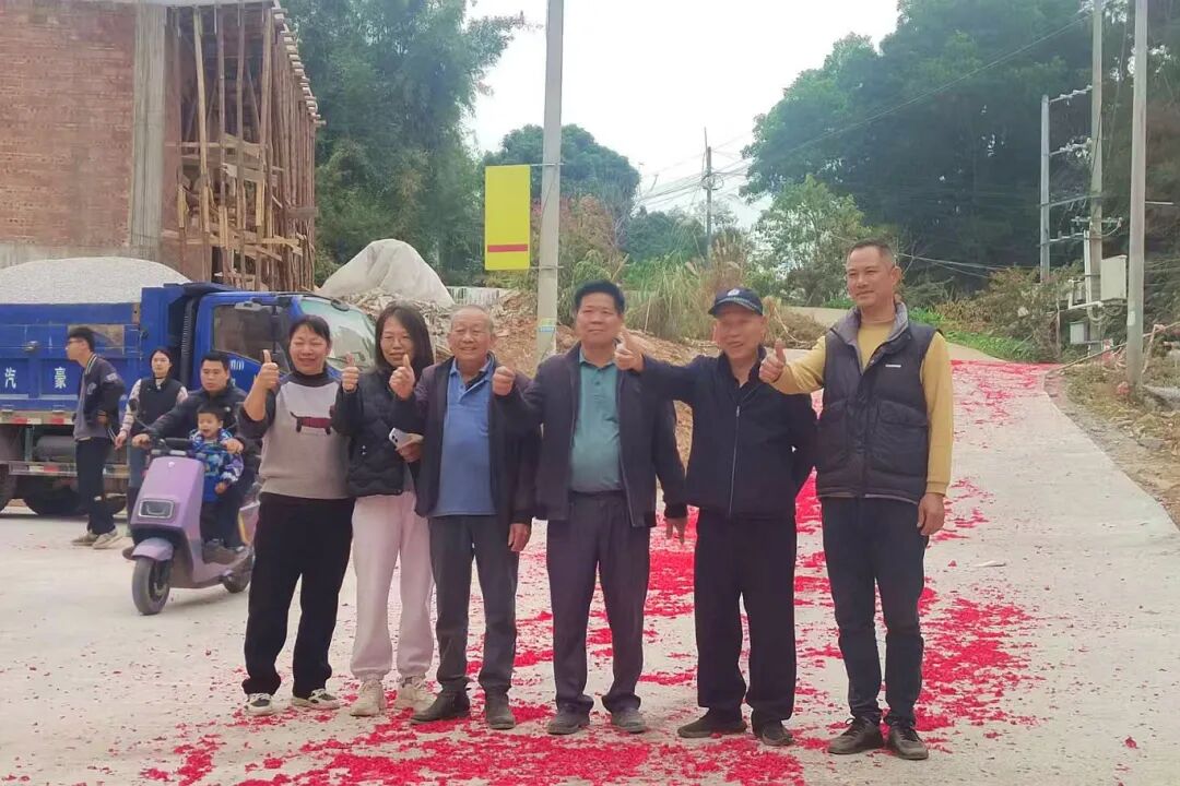 经过紧张施工,最后130米路段顺利完工。2026年2月7日上午九时,喜庆的爆竹声在新修的水泥路上响起,正式宣布道路通车,小型车辆与行人可顺畅通行。随后,施工队伍又完成了五盏太阳能路灯的安装和减速带的设置,让道路配套设施更完善、群众出行更安全。据统计,此次修路累计筹得资金约12万元,共修建六段支巷烂路及一条主路,全长376米,彻底终结了该路段泥泞难行的历史,方便周边居民和游客出行。