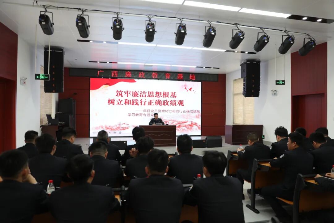 在主题报告厅,监狱领导以“筑牢廉洁思想根基 树立和践行正确政绩观”为主题讲授专题廉政党课。党课紧扣监狱工作职责,剖析违纪违法典型案例与廉政风险点,号召青年警察脚踏实地履职尽责,做到廉洁从警、务实担当。