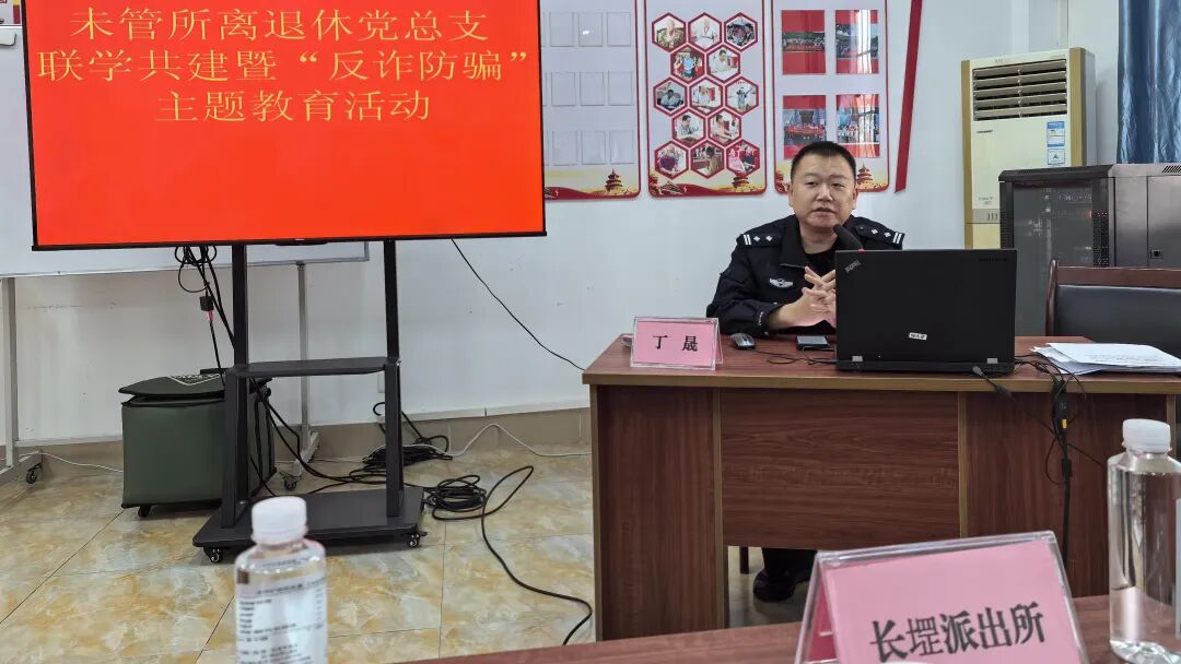 活动现场,长堽派出所警察结合近期高发的老年人诈骗案例,通过案例剖析、现场互动答疑、发放反诈宣传手册等方式,提醒老同志提高防范意识,守护好“钱袋子”。