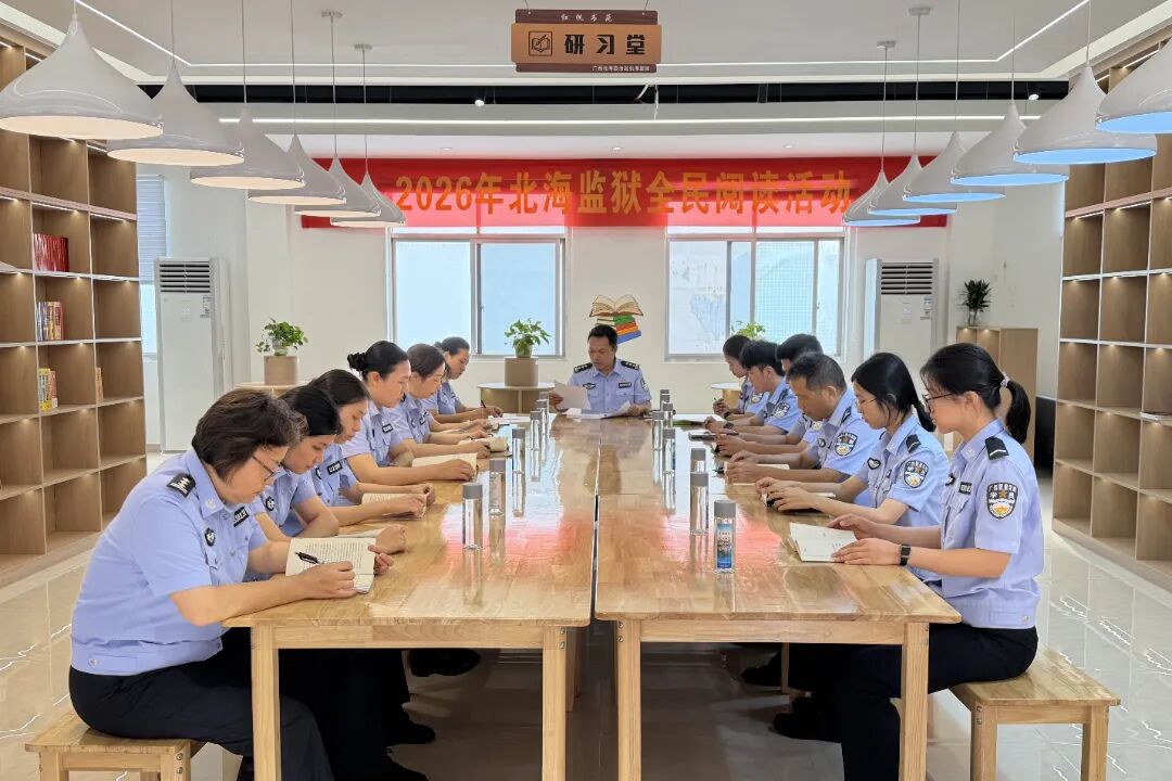 北海监狱响应2026年粤港澳桂琼“共读半小时”活动号召,举办“书香润警营 阅读励初心”全民阅读活动。参与活动警察围绕岗位业务、文学经典等畅谈感悟、交流心得。