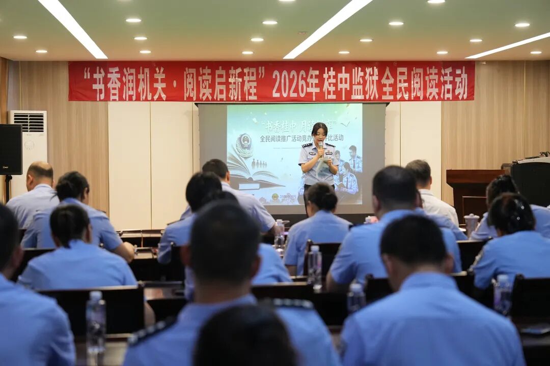 桂中监狱举办2026年“书香润机关 阅读启新程”全民阅读推广活动暨读书分享会评比活动。16个工会小组结合工作实际,聚焦业务能力提升、警营文化培育等内容,积极策划内容丰富的读书活动,展现警察职工善学善思、实干担当的精神风貌。