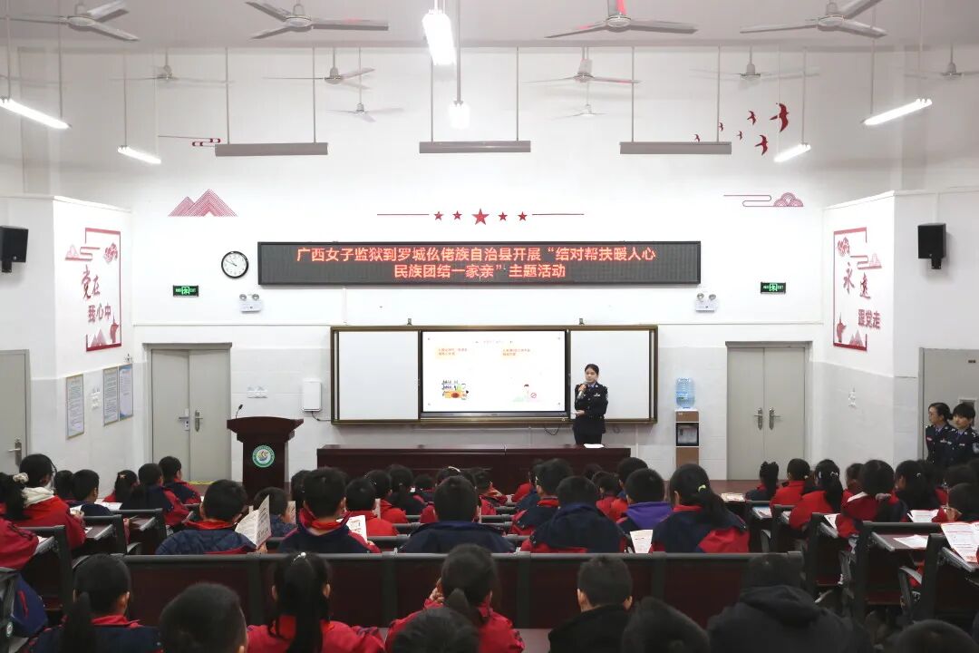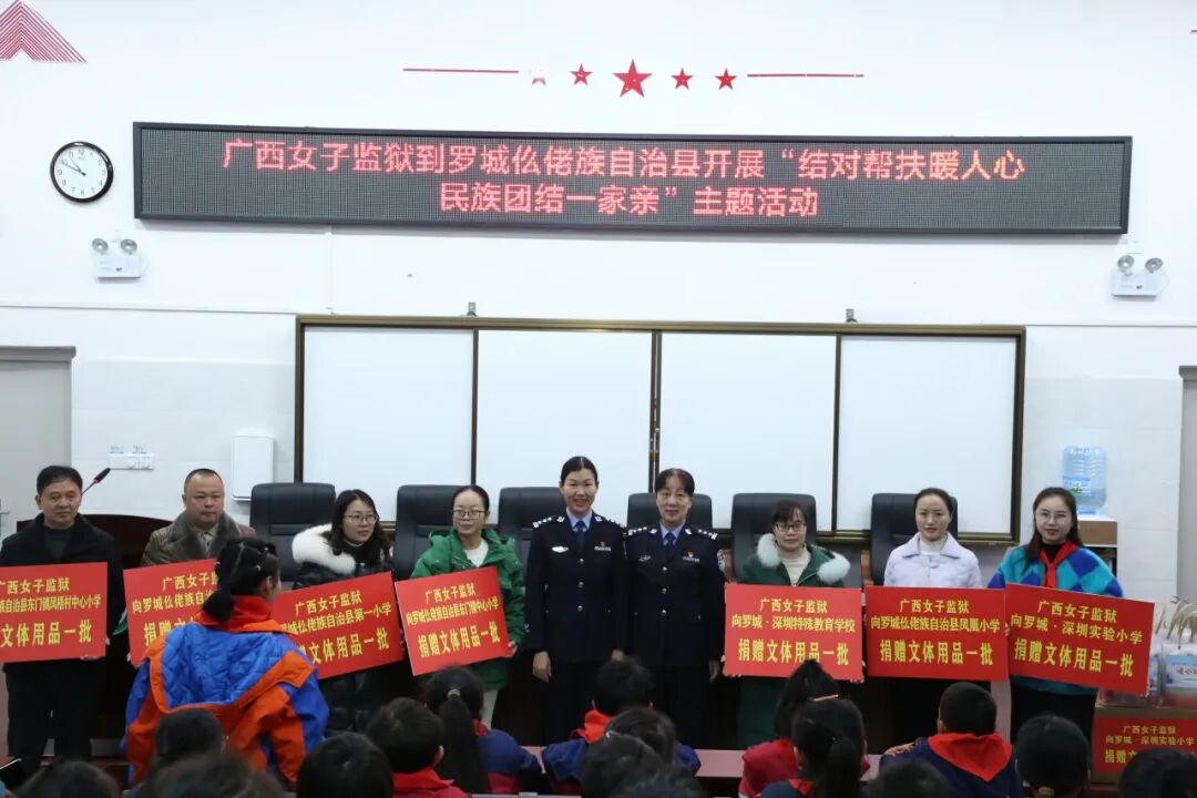 为充分发挥乡村振兴帮扶作用,持续深入推进“百警进校园 千警结对留守儿童”活动,进一步做好关心关爱未成年人工作,12月27日,广西女子监狱组织警察到罗城仫佬族自治县开展结对帮扶暨法治宣传教育活动,以实际行动助力乡村振兴,推进民族团结进步工作。