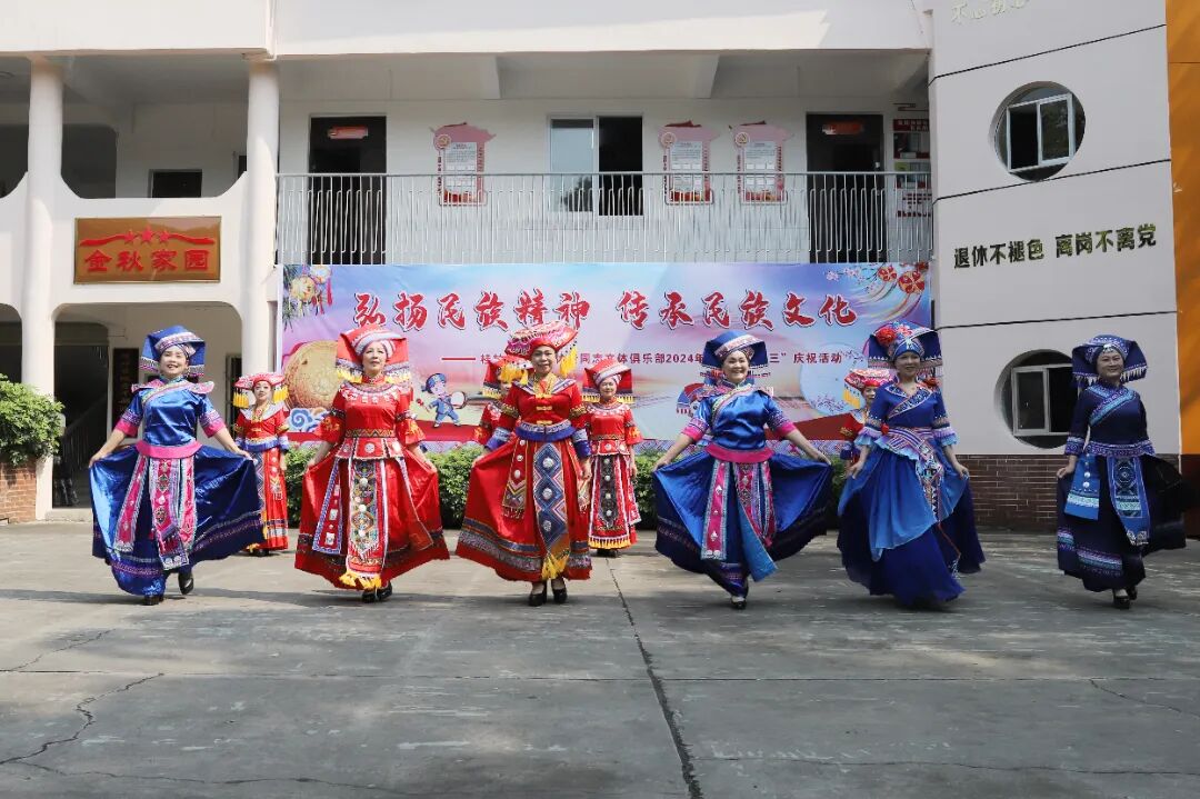 在夕阳红广场,离退休老同志开展了“弘扬民族精神 传承民族文化”主题庆祝活动,秧歌、功夫扇表演,柔力球、抛绣球、民族服装展示、山歌对唱等系列文艺活动,营造出浓厚的节庆氛围。