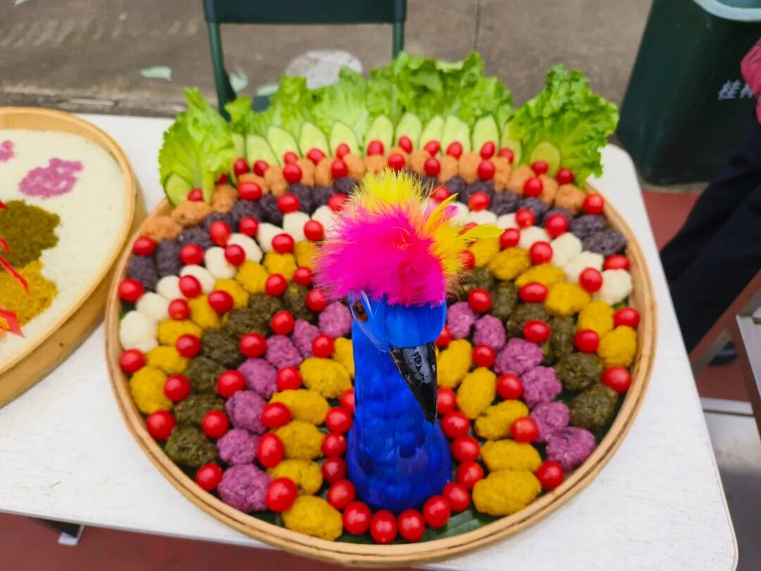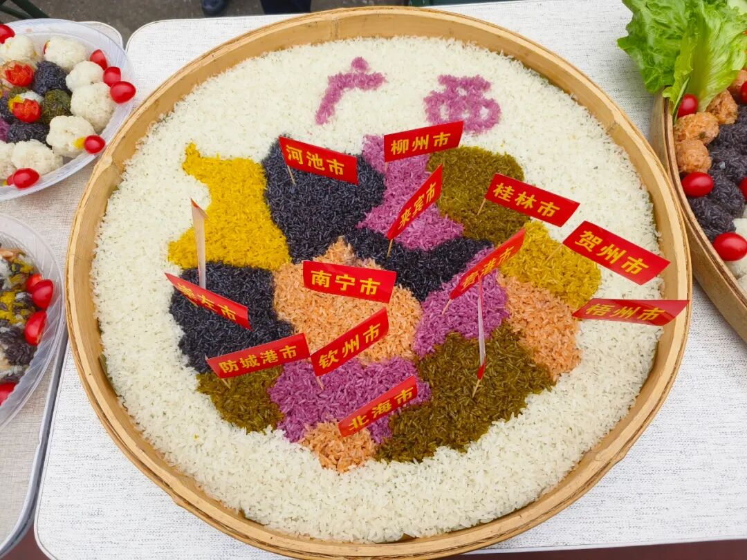 活动现场,还摆上了监狱人民警察制作的具有民族特色的五色糯米饭、油茶等广西小吃美食,大家一边参加活动一边品尝美食,现场气氛其乐融融。