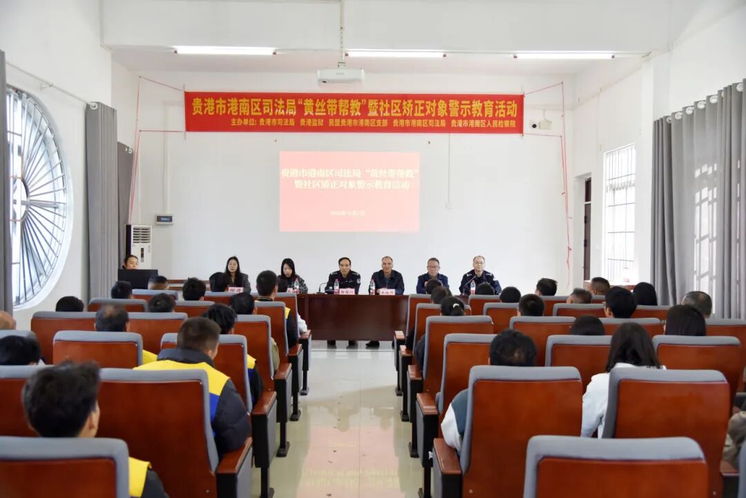 近日,贵港监狱联合贵港市司法局、港南区司法局、市公安局港南分局、港南区人社局及民盟贵港市港南区支部,共同举办“黄丝带帮教”暨社区矫正对象警示教育活动。