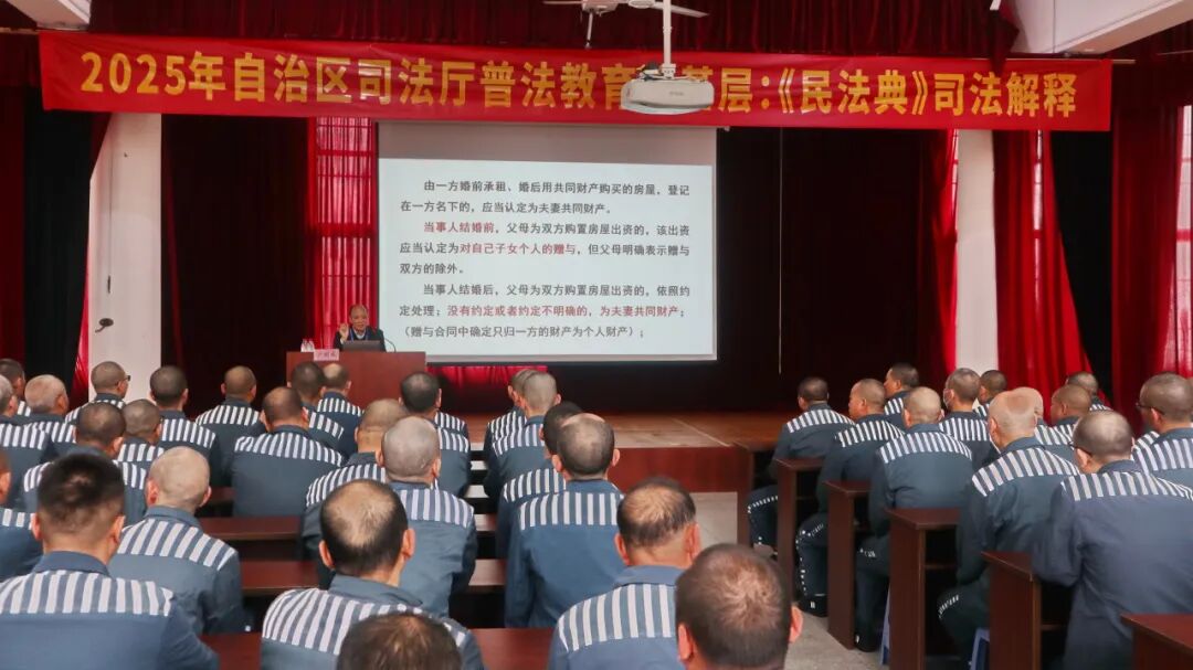 英山监狱着力构建多元化的普法教育体系,今年3月,自治区司法厅普法与依法治理处邀请专家走进监狱,捐赠书籍并给罪犯开展《中华人民共和国民法典》专题宣讲。专家结合生动案例,深入浅出地解读相关法律知识。