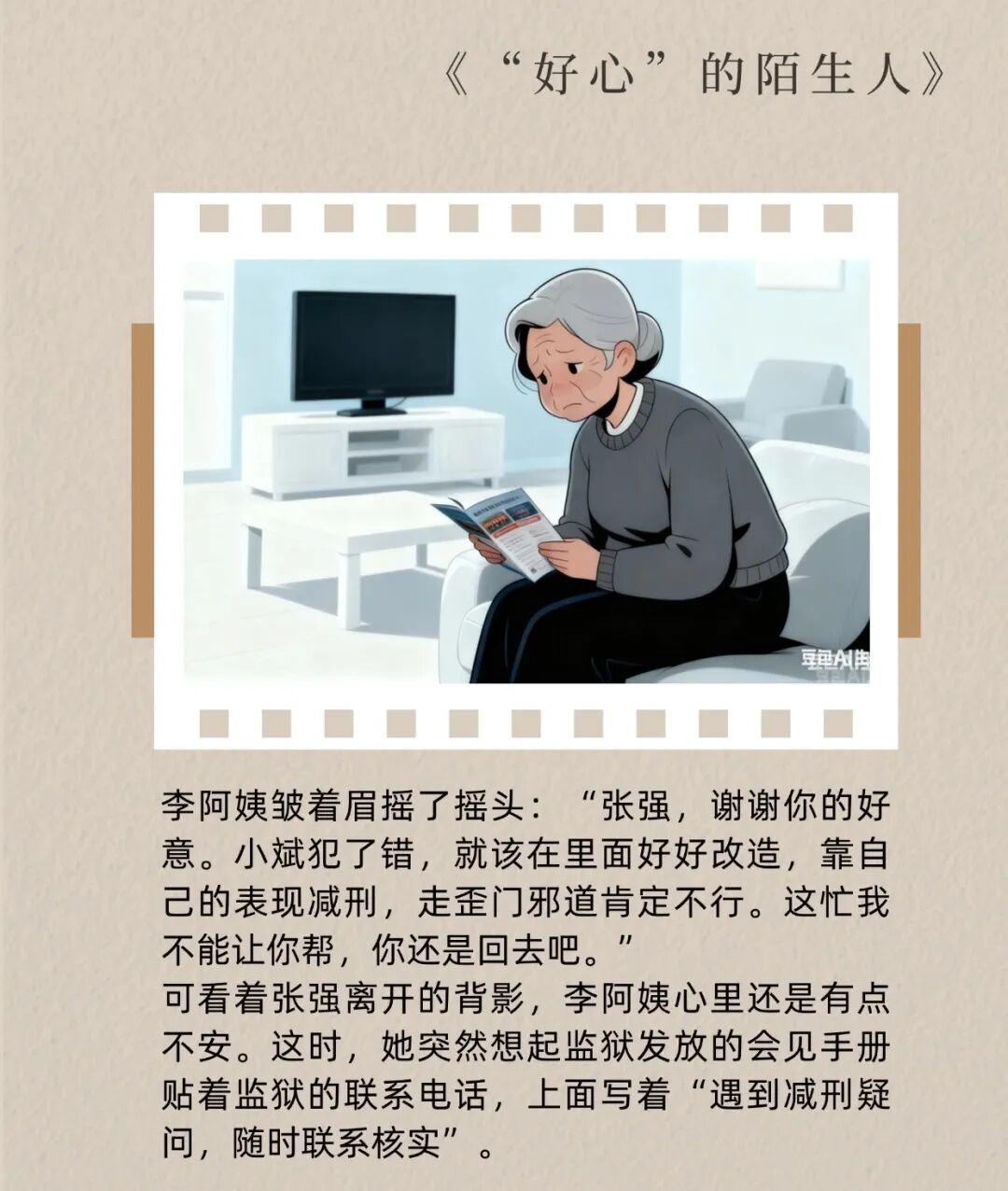 生活里,骗子总是盯着人们“软肋”下手。对于牵挂服刑亲人的家庭来说,“能帮孩子减刑、早点出来”这句话,就像一根救命稻草,可这背后,往往藏着精心设计的骗局。今天咱们通过一个互动剧情,拆解“好心人帮减刑”的诈骗套路,每个选择都关乎财产安全,快来跟着剧情做判断!