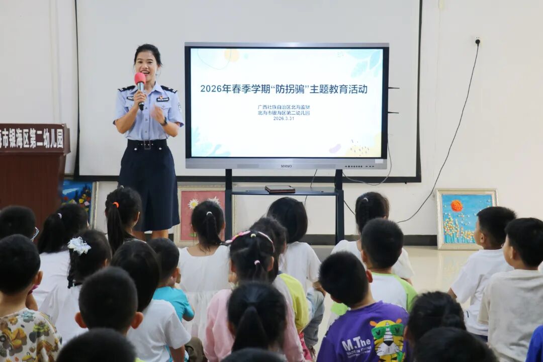 北海监狱聚焦幼儿安全防护薄弱环节,组织警察走进北海市银海区第二幼儿园,为90余名幼儿开展防拐骗安全法治小课堂。