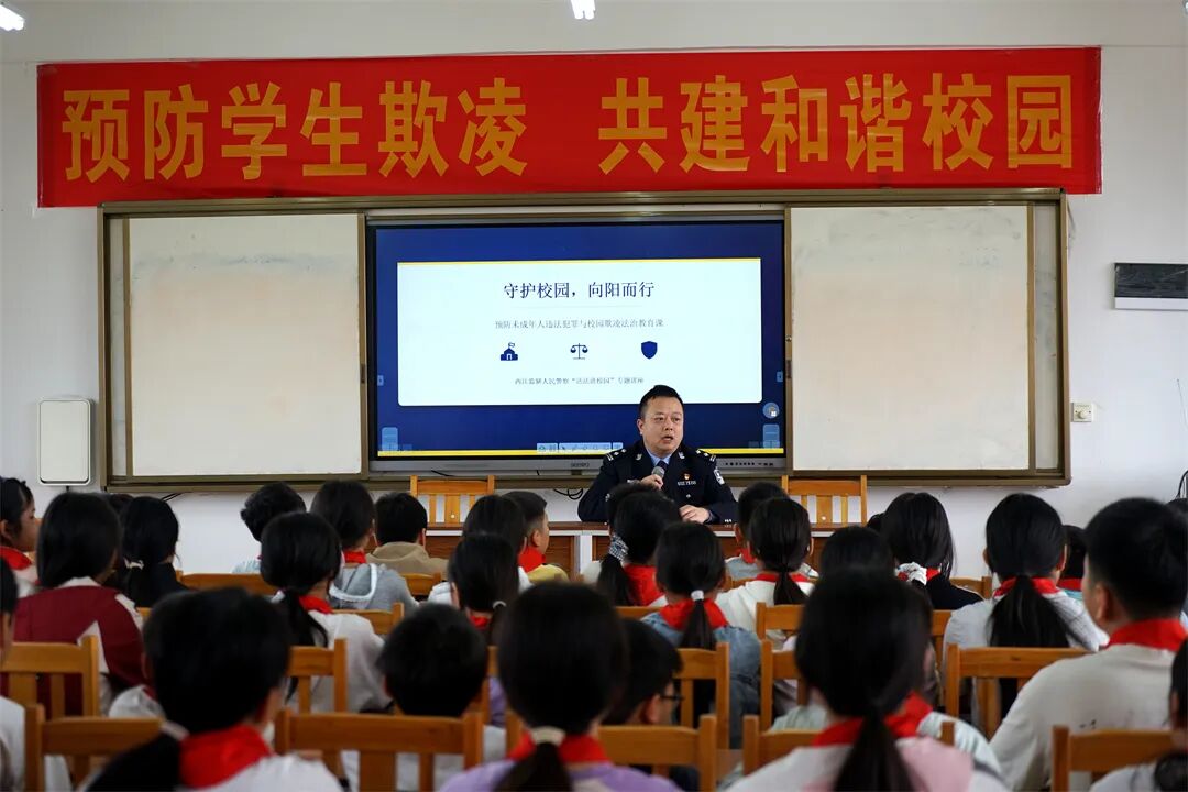 在新安小学,普法宣传员聚焦校园欺凌问题,通过理论讲解、案例剖析、互动交流,深化学生对欺凌危害的认知,传授自我保护实用方法。