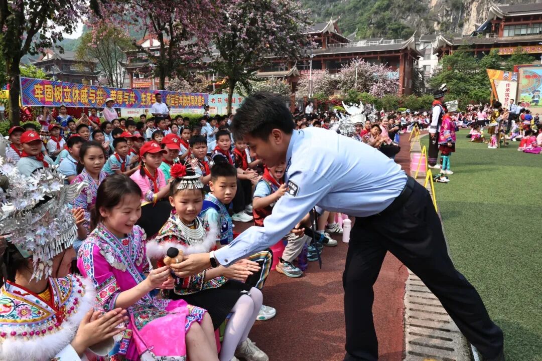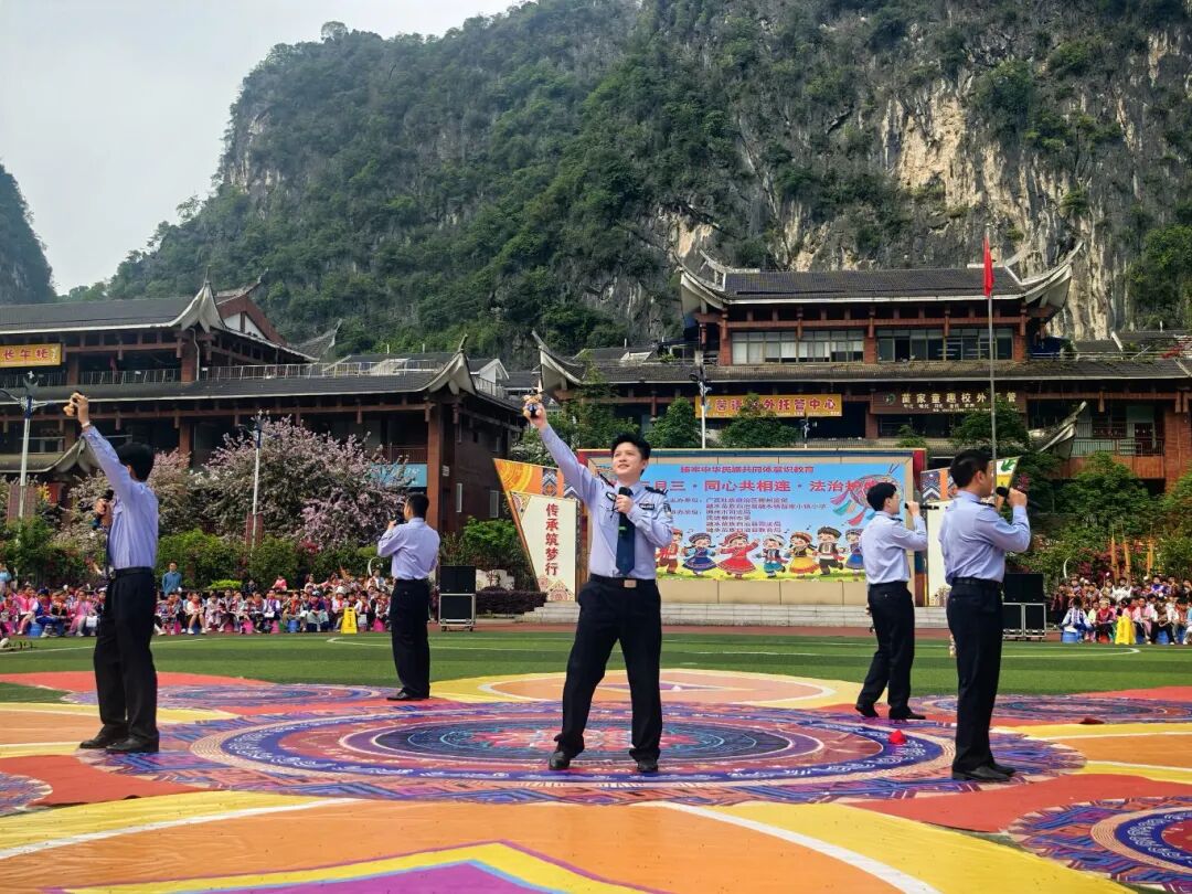 当绚丽民族盛装遇见庄严藏蓝警服,当悠扬民俗歌舞遇上趣味法治课堂,当壮乡“三月三”遇上普法宣传,在融水苗族自治县苗家小镇小学里,欢乐、守护与温暖在这里撞了个满怀。