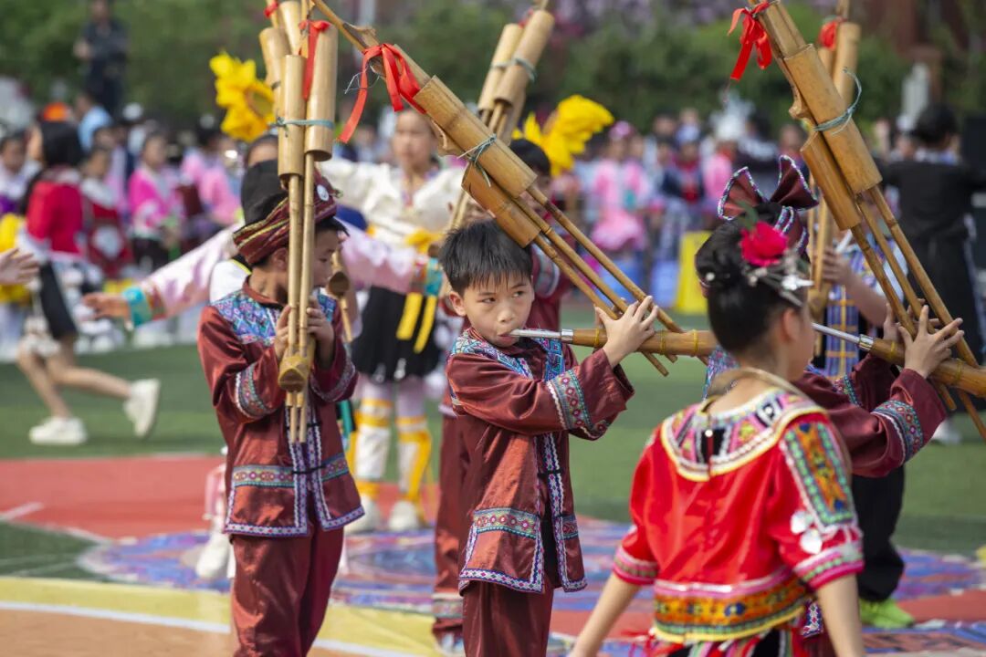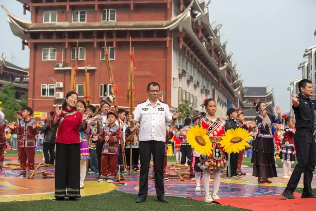 芦笙吹起,鼓声激昂。现场的警察与师生们手拉手围成同心圆,踏着欢快节拍共跳踩塘舞,在欢歌笑语中凝聚同心力量,用最质朴的方式,书写民族团结一家亲的温暖篇章。